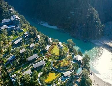 Nestled along the banks of the majestic Ganges River in the foothills of the Himalayas, the secluded Taj Rishikesh Resort & Spa is an ideal base for excursions into the mountains or for tranquil relaxation. The onsite J Wellness Circle Spa is a one-of-a-kind wellness sanctuary offering relaxation and rejuvenation.