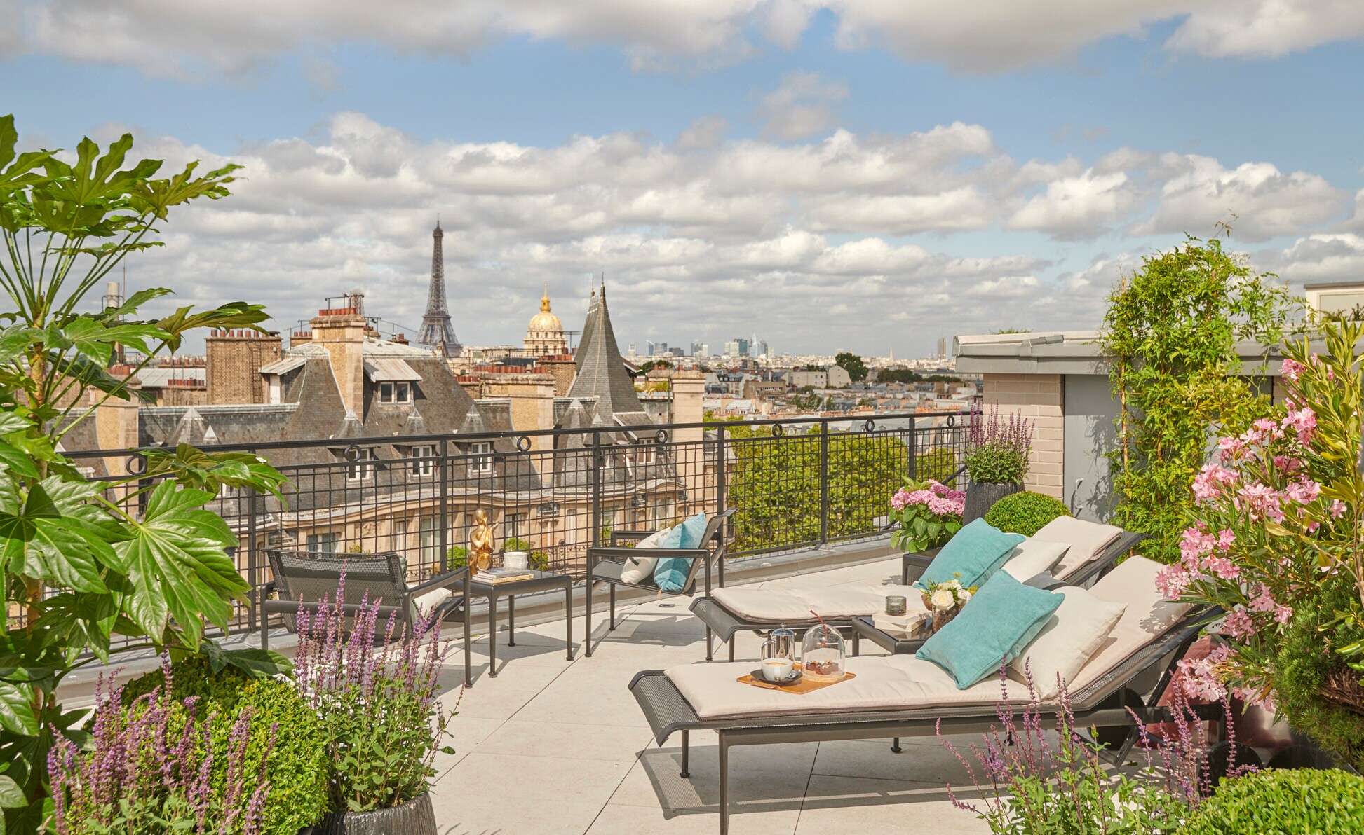 This chic Parisian hotel is located in a 1910 Art Deco building in the Saint-Germain-des-Prés neighborhood, near many major Paris attractions—it’s less than a mile walk to the Louvre and about 0.15 miles to Bon Marché department store. Suites feature contemporary furnishings, rich oak floors, and Statuario marble bathrooms. Guests can also choose to book one of three capacious apartments, which come with private terraces (one with its own private fitness room) and enviable city views. Visit the Akasha Spa after a day wandering the romantic streets of Paris for a treatment or wellness class inspired by the four elements of air, earth, water, and fire.