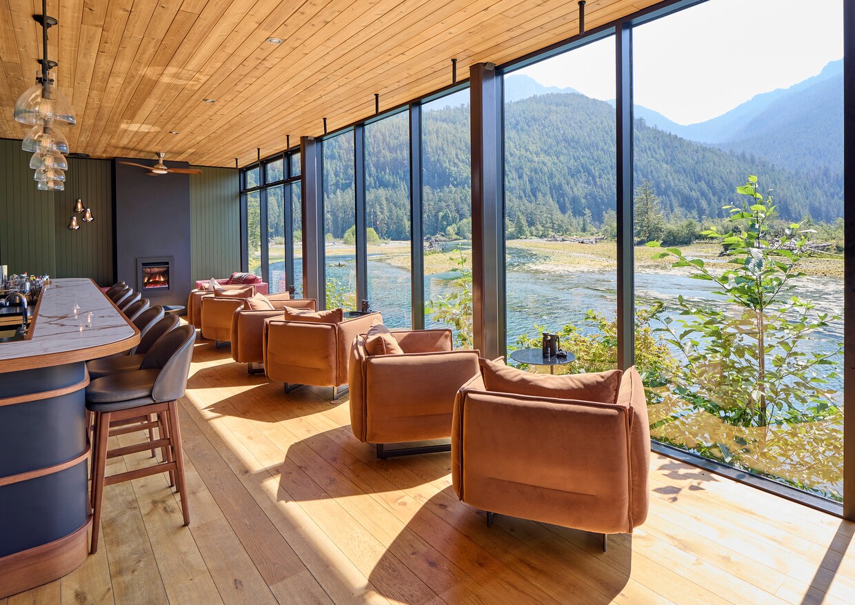 Seaplane or boat are the only ways to reach this magical retreat amid 600 acres of untouched wilderness along the Clayoquot Sound on Vancouver Island. Twenty-five canvas tents with river or rainforest views evoke the charm of a 19th-century outpost, featuring heated floors, contemporary furnishings, and First Nations artwork. The Cookhouse serves elegant, all-inclusive meals showcasing foraged ingredients and local seafood. Fuel up and then set out on adventures like hiking, horseback riding, kayaking, canyoning, and wildlife spotting.