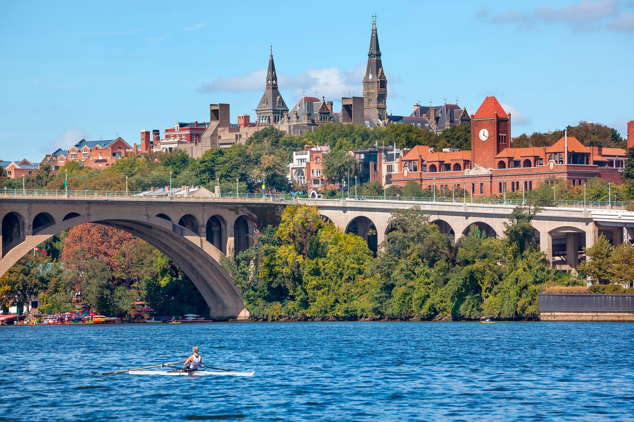 Hit the water for scenic views along the Potomac and an invigorating workout. You can rent single or double kayaks, canoes, and stand-up paddleboards from six D.C.-area boathouses, including Key Bridge Boathouse in Georgetown. Boating in D.C. also offers classes and tours such as a 75-minute host and history themed guided kayak excursion. Boating season typically runs from April to October.