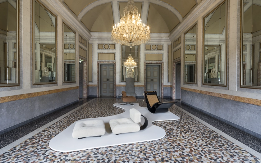 Artful furniture in a modernist home.