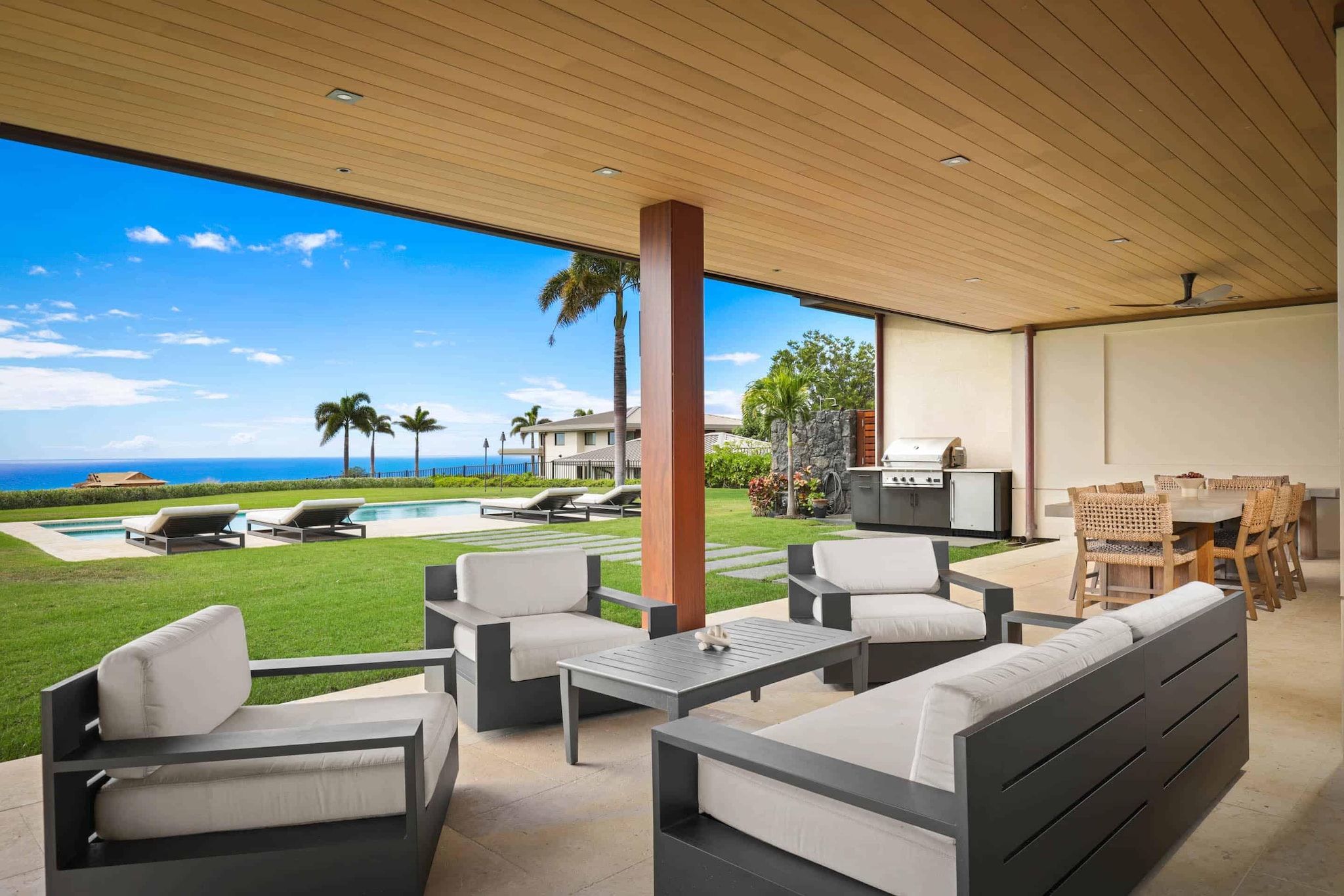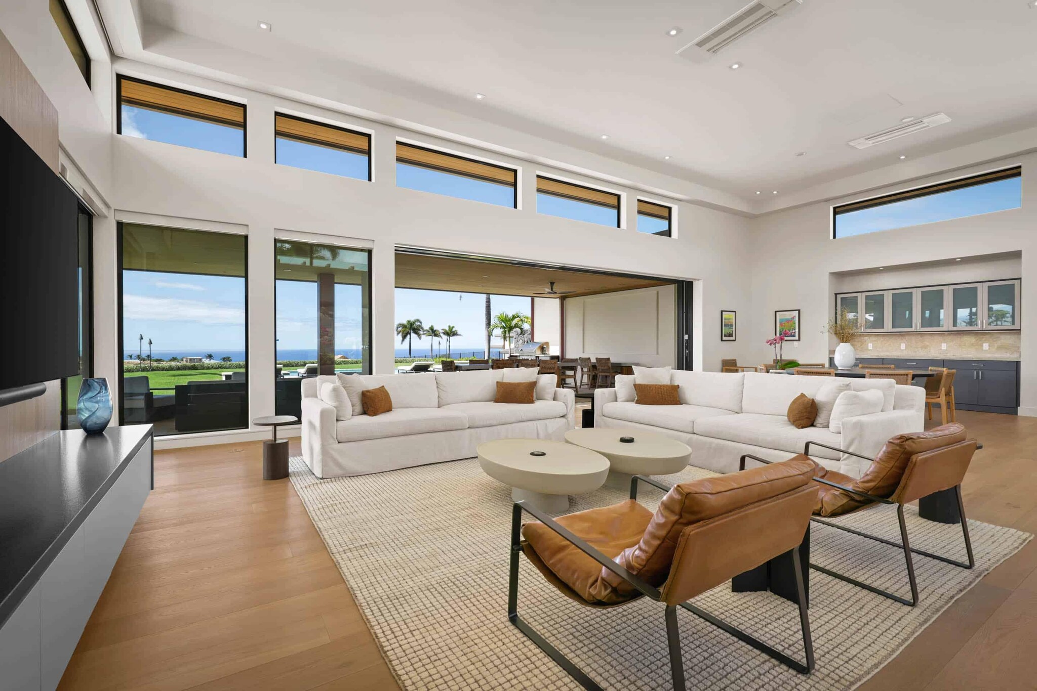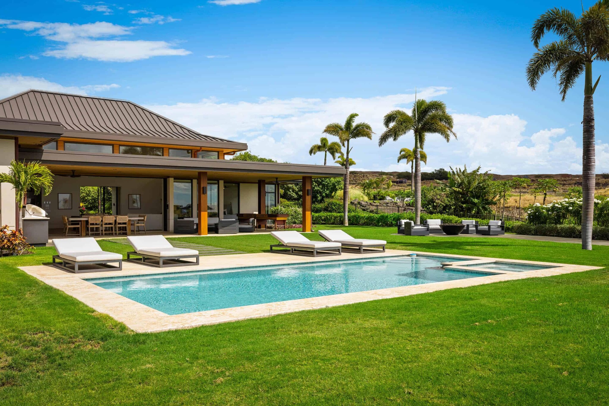 Where to Stay - Select Homes + Retreats: In the prestigious Mauna Lani Resort area in Waimea, the Mauna Lani Lux Golf Estate combines minimalist design with natural splendor. With six bedrooms, it’s an ideal base for large families or groups. The modern interior features sweeping windows that bring the outdoors in, and the spacious lanai encourages dining and relaxing. Nearby, you can play golf at Mauna Lani Golf Courses, visit pristine beaches, or indulge in dining and shopping. Your rental includes access to One Ocean’s exclusive oceanfront retreat, where you can enjoy a private dinner or unwind in the cliffside jacuzzi, taking in Mauna Lani’s 210-degree sunsets.