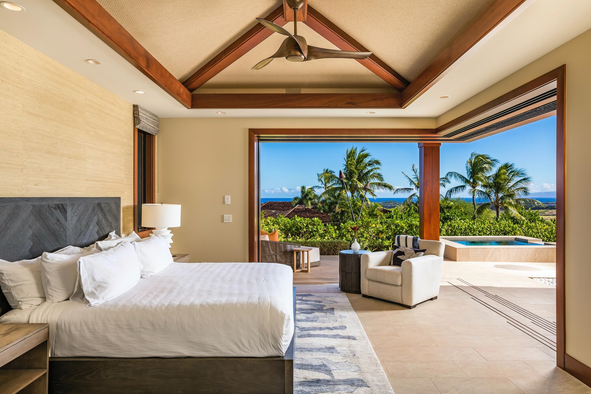 Where to Stay - Select Homes + Retreats: Perched on a bluff at the exclusive Hualalai Resort, the Kulanakauhale Estate delivers ocean and coastline views as far as the eye can see, including Mt. Hualalai, Mauna Kea, and the Kohala Mountains. The 3,640-square-foot interior features soothing neutral tones, an open floor plan and vaulted ceilings. Four bedrooms sleep eight guests, while the private outdoor area includes a spacious covered lanai, infinity pool with waterfall and barbecue area. When you’re feeling active, the resort center, beach and restaurants are just a quick golf cart ride away. Hualalai’s 18-hole Jack Nicklaus Course, one of two world-class golf experiences at the resort, is available to registered guests.