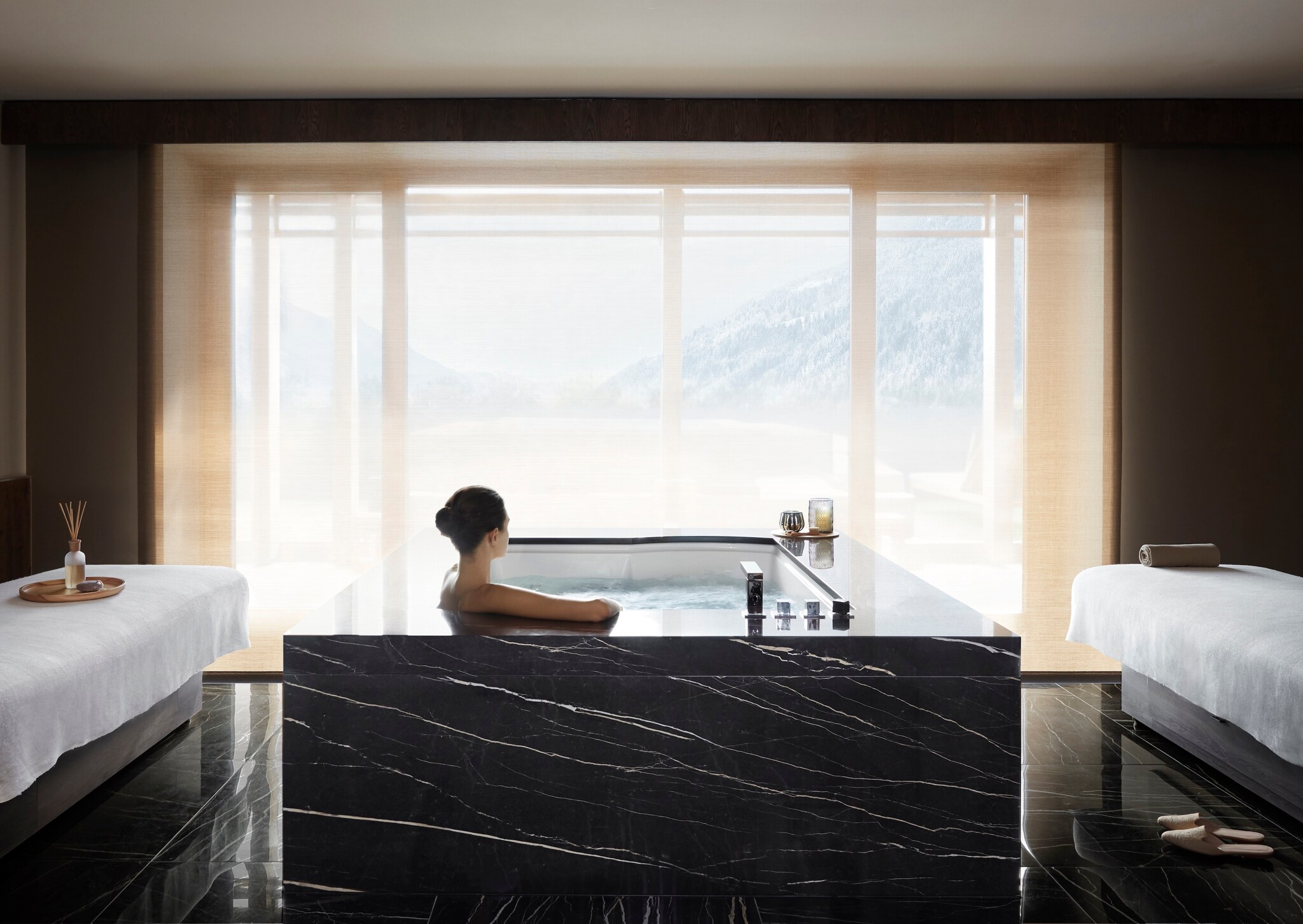 Nature, luxury, and unspoiled beauty harmoniously co-exist at Lefay Resort & SPA Dolomiti, an Italian mountain paradise, where you can ski the slopes of Madonna Di Campiglio in winter and hike or horseback ride in summer. Whatever the season, soothe your muscles at Lefay Spa. An expansive area of indoor and outdoor pools and saunas offer brilliant reflections of you and the natural beauty of the landscape. A large whirlpool evokes the healing power of ancient spas, and a salt-water lake and salt grotto add essential minerals to your pampered experience.