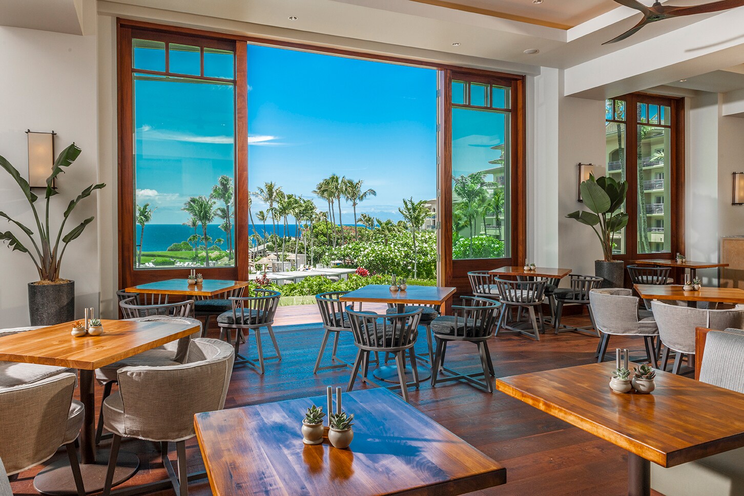 Pretty gardens flourish across the resort, with one dedicated entirely to plumeria. There are three pickleball courts and one for tennis; three pools (with saltwater, with kid-friendly features, and for adults only); and programming run by the Kids For All Seasons day camp. The beach is set up for activities like snorkeling and paddleboarding, and the concierge team can organize excursions, notably, a catamaran sailing led by a Hawaiian navigator, who will teach you how Polynesians once navigated using only the stars, swells, and other natural guidance.