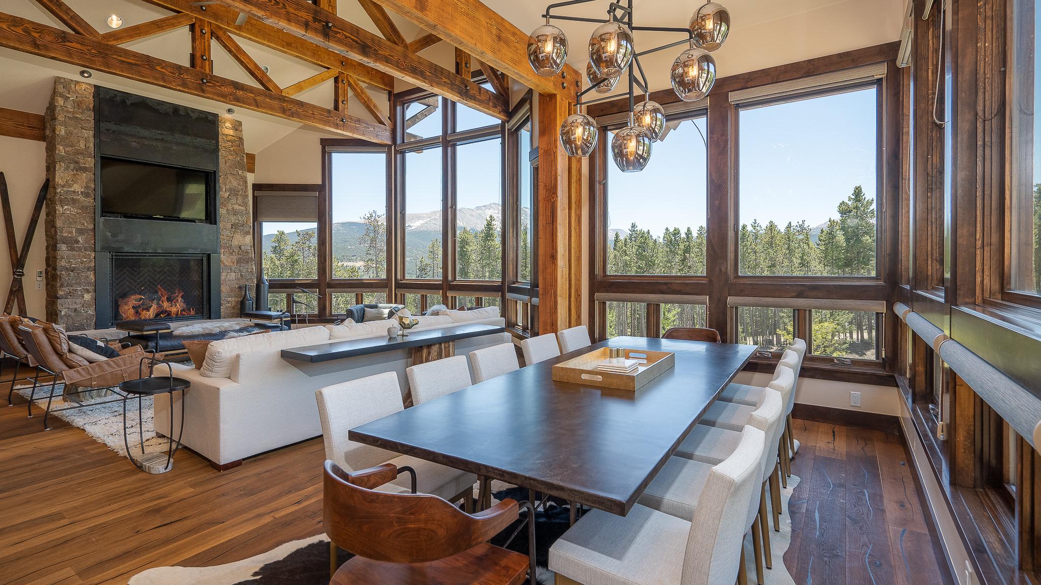 Epic Retreat, sleeps up to 16 guests with eight bedrooms and six and a half baths. Experienced and intermediate skiers and riders can hit the trails mid-mountain with ease via ski in/ski out access, while beginners can call a complimentary shuttle for transport to the base. The home features a chef’s kitchen with professional-grade appliances, a breakfast table, great room, and a separate dining room. Enjoy après-ski drinks on the deck or convene on the home’s lower level, equipped with a wet bar, bar fridge, and ice marker, along with a room full of billiards, board games, and console video games.