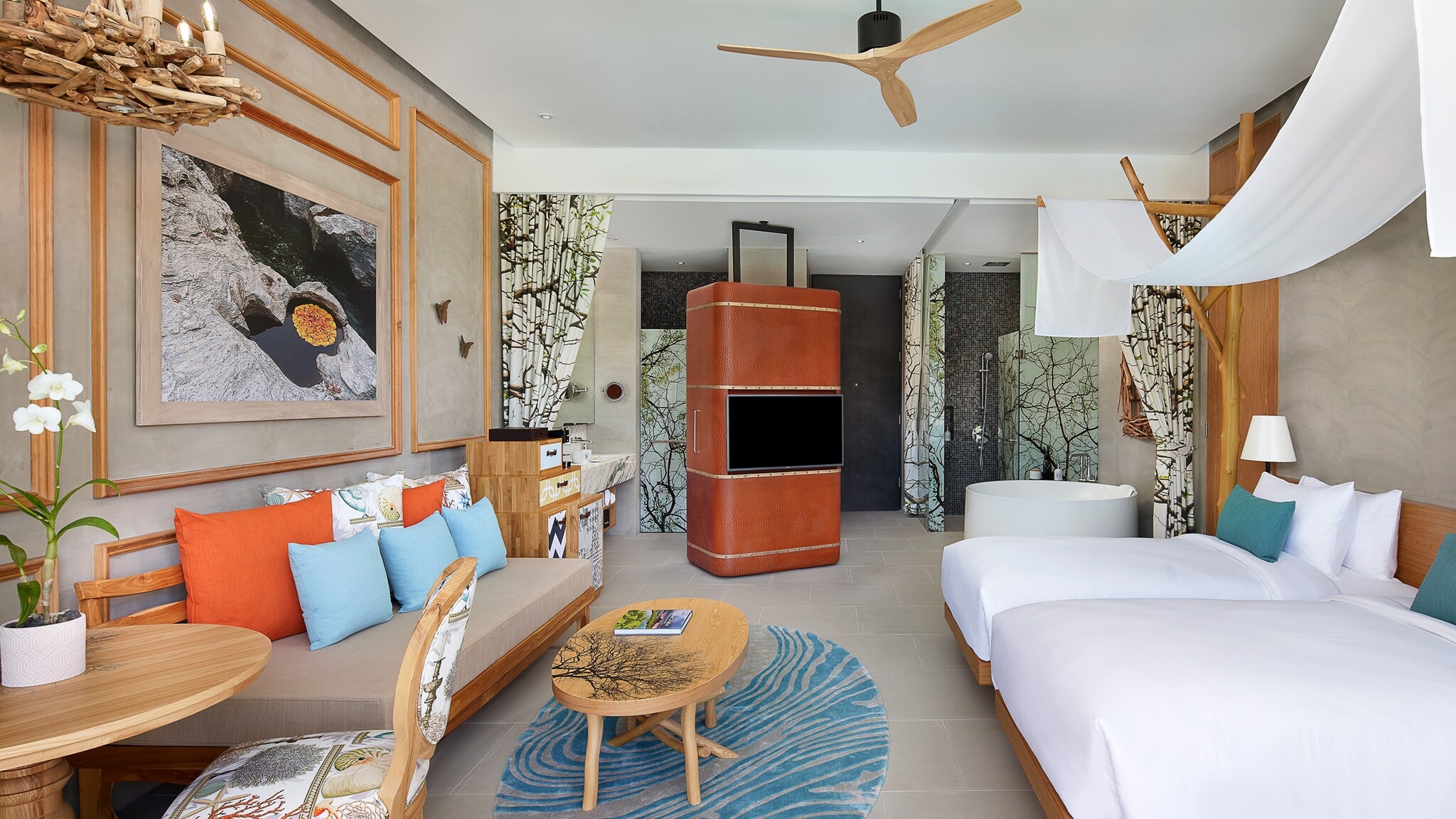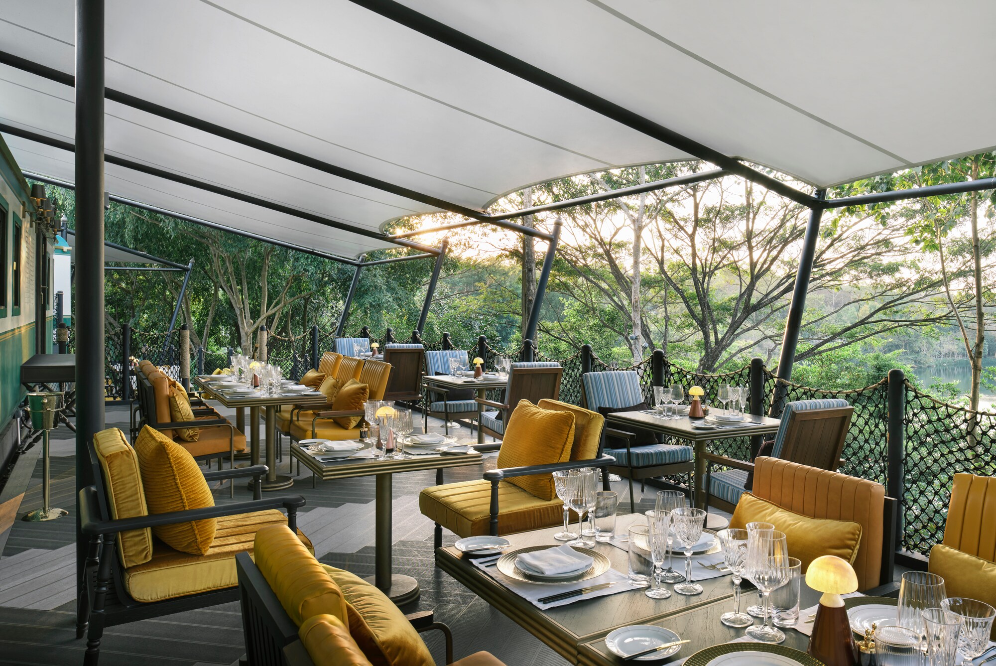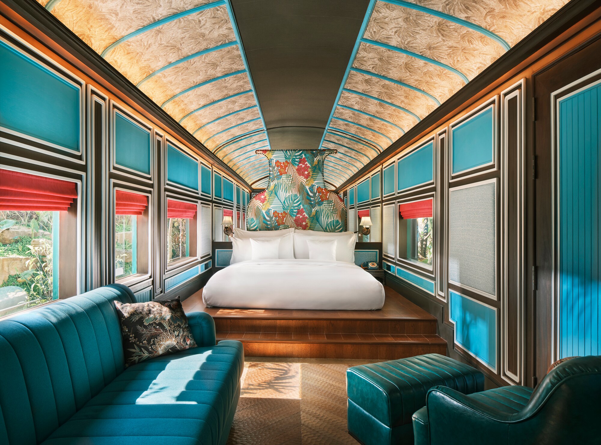 Maximalist designer Bill Bensley is responsible for the whimsical train-themed design at InterContinental Khao Yai Resort, which is built around several lakes. Commit to the fantasy and spring for one of the suites, which are retrofitted vintage railway carriages. Platinum Card members who book this Fine Hotels + Resorts® property can put their $150 credit, instead of the typical $100 credit, towards a treatment at the two-room spa, which is stuffed into a refurbished train car.