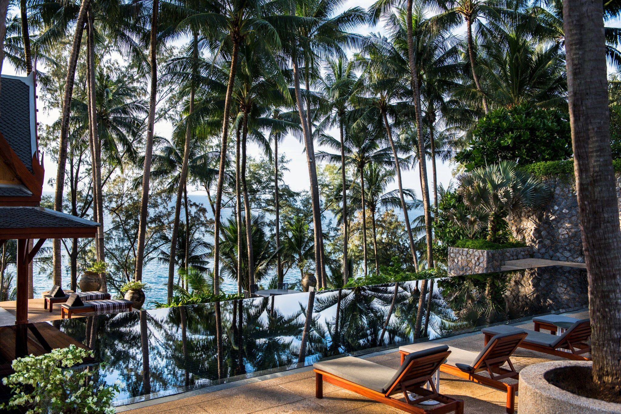 Amanpuri, the original Aman hotel, drips with classic Southeast Asian luxury. Contemporary pavilions are built on a hillside of coconut palms and come with private terraces and outdoor lounging salas. Villas feature Thai art and antiques, private pools, and two live-in staff. Along with yoga and meditation sessions, there’s an immense spa where you can explore everything from crystal healing sessions to facials with Aman’s own skincare line.
