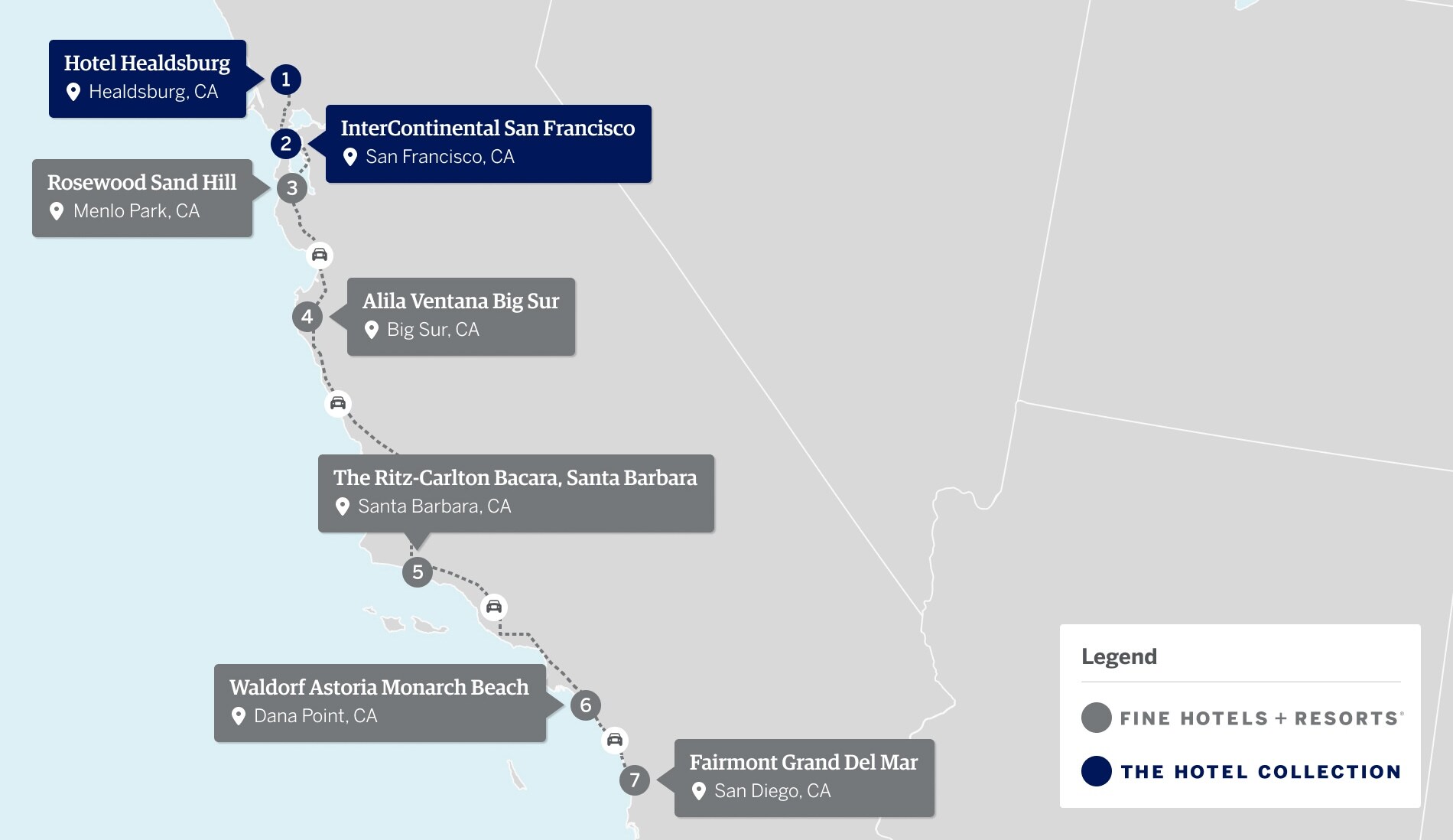 The drive along the California coast is a legendary one that can be done again and again, in so many ways. Whether you’re starting from the Bay Area and heading south, or doing San Diego to San Francisco, the Fine Hotels + Resorts® and The Hotel Collection properties dotting the path are an excellent place to rest between the miles—and make your Golden State road trip truly memorable.