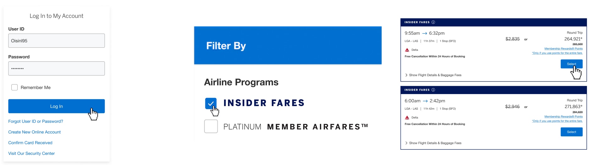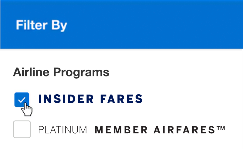 Insider Fares are valid only for Membership Rewards® program-enrolled Cards when a Card Member is booking through AmexTravel.com. Insider Fares will display in search results on AmexTravel.com only if an eligible Card Member is logged into his/her account and has enough Membership Rewards points for the entire fare; otherwise, publicly available fares will display. Insider Fares are fares for which less Membership Rewards points are required to purchase the flight. The entire amount of the purchase must be covered using Membership Rewards points. Insider Fares are only available on select flights. When purchasing an Insider Fare, the dollar amount of the fare will be charged to the Card Member’s account and a credit will be issued in that dollar amount on the Card Member’s statement; additionally, the number of Membership Rewards points required for the fare will be deducted from the Card Member’s Membership Rewards account balance. Participating airlines and benefits are subject to change. For more information about the Membership Rewards program visit www.membershiprewards.com/terms.