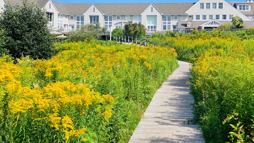 Classes like How to Plant for Wildlife teach guests about the importance of biodiversity for healthy coastal ecosystems, and Bug's Life Garden Tours gives younger guests an opportunity to dress like bugs and learn about local ecosystems from a bug's perspective. There are also guided beach ecology walks with local naturalists where guests can learn about coastal environments and sustainability. The property's conservation efforts extend beyond their gardens and goats to renewable energy. As of October 2023, the Inn is proud to be powered by 100% renewable energy from a community solar farm in Maine.