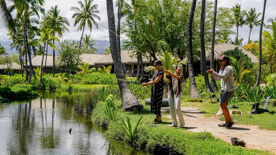 Immersed in the rich heritage of Hawaii, Kona Village invites guests to engage in aquaculture experiences guided by on-site biologists and cultural advisors. With 22 anchialine pools, the resort places a strong emphasis on plant and animal conservation and restoration efforts and is eager to share its knowledge. The brackish water anchialine pools on site are naturally occurring, and are home to rare, endemic plant and animal species. The property not only understands the environmental significance of these pools but also the history of stewardship that ensured the longevity of these delicate ecosystems. The development team worked to remediate these pools from invasive aquatic species and plants, supporting ecosystem health and proliferation. They are continually monitored, cared for, and studied so that these rare habitats not only survive, but thrive.