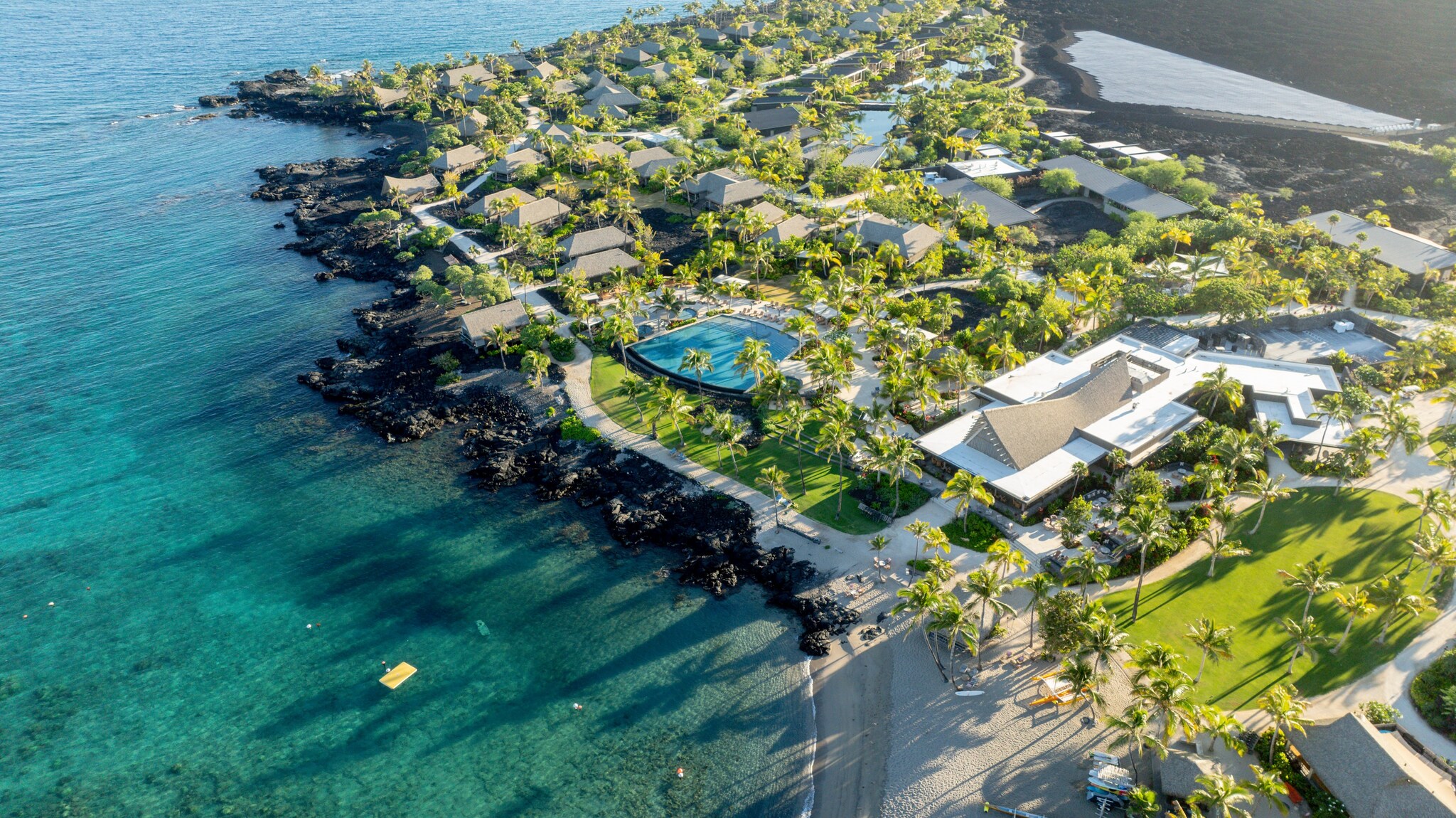 Kona Village, A Rosewood Resort, has embarked on a journey to help reduce their waste. The resort boasts one of the largest privately owned microgrids in the state, harnessing the power of the sun through over 8,000 solar panels spread across two acres—a pioneering feat in Hawaii’s hospitality landscape. The resort supports multiple initiatives to reduce waste, including a recycling program and partnerships with a local pig farm, where appropriate food waste is transformed into food for the animals. Just as the management of waste is of high importance to an island community, so too is the preservation and treatment of water. The property’s efforts include the development and operation of its own reverse osmosis and wastewater treatment plant on-site. Also, the property was architected to have a deliberate layout planned in accordance with the traditional winds of the area to maximize natural breezeways and thereby reduce the need for air conditioning.