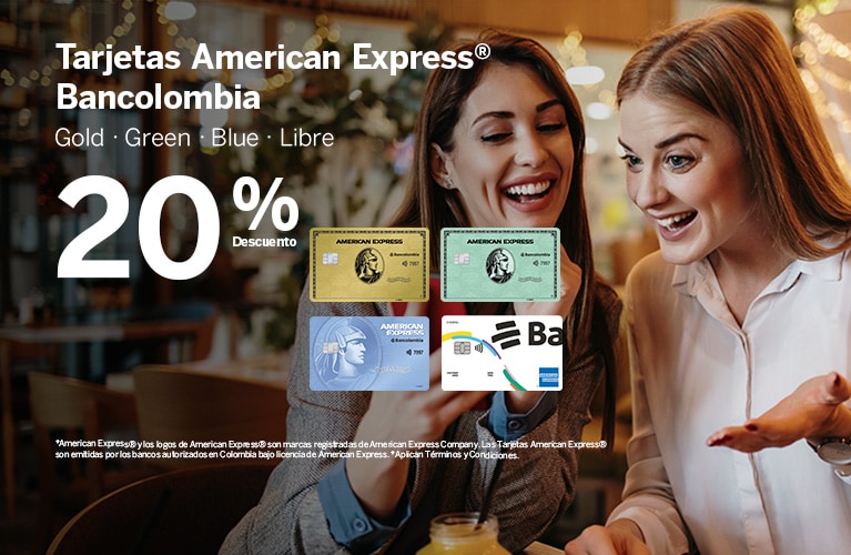 - Este beneficio no es acumulable ni canjeable con otros beneficios, promociones o descuentos vigentes y asociados a las Tarjetas American Express® emitidas en Colombia.