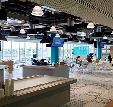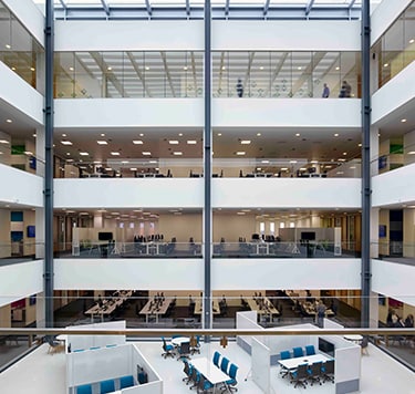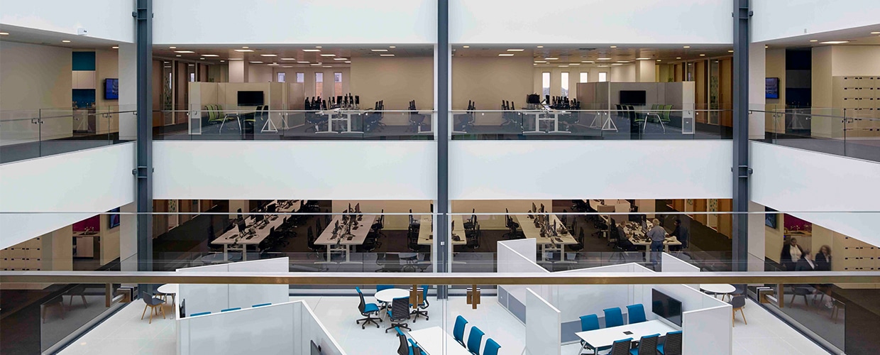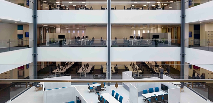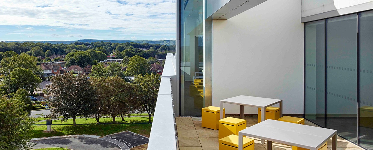Nuestra oficina de Burgess Hill llamada “Sussex House” alberga a unos 900 compañeros. Dentro de su elevado atrio central encontrará a una gran parte de nuestros compañeros de Tecnología y Finanzas, así como a aquellos que apoyan nuestra red de pagos global.