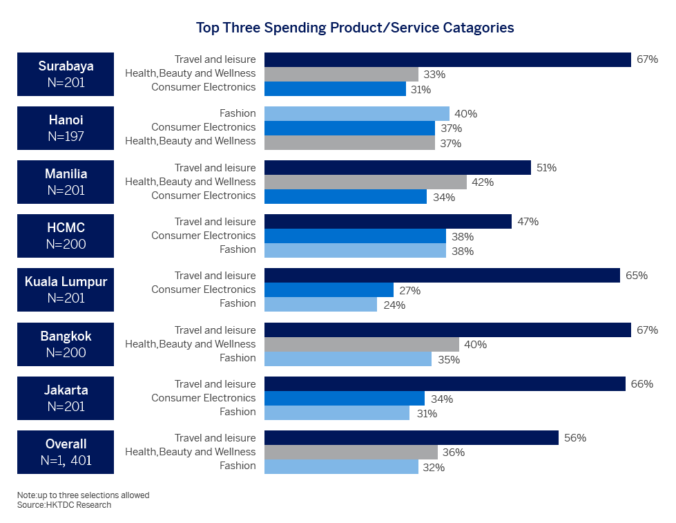 So what are the tastes and spending preferences of ASEAN consumers? Despite the diversity of the markets, HKTDC found some commonalities in a 2017 survey it conducted of middle-income consumers from across 7 large ASEAN cities, namely Bangkok, Kuala Lumpur, Manila, Jakarta, Surabaya, Ho Chi Minh City, and Hanoi.