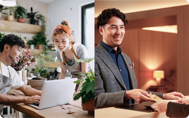 第一線で支持されるビジネス・ゴールド・カード。進化し続けるサービスが経費削減・業務効率化を後押しします。万全のセキュリティと補償、メタル製カードの存在感。日常から万一まで、成長を支える頼れる一枚です。
