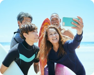 旅行中の怪我や病気、盗難など最高1億円を補償。ご家族や追加カード(付帯特典あり)会員様の補償もご用意しています。