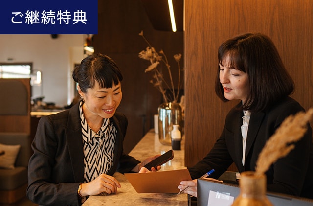 カード更新時に、国内の対象ホテルが2名様でご利用いただける無料宿泊券をプレゼント。