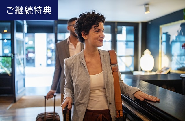 カード更新時に、国内の対象ホテルを2名様でご利用いただける無料宿泊券をプレゼント。