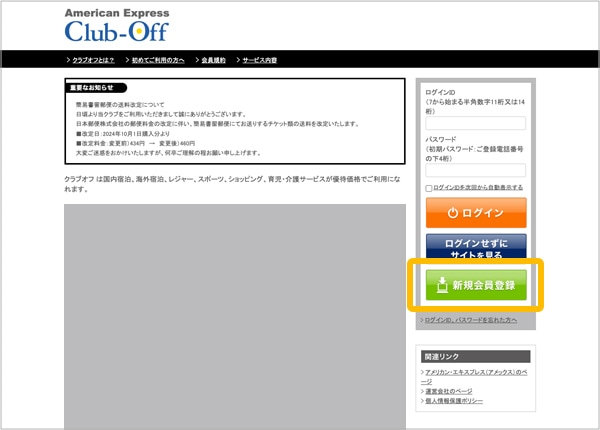 会員登録を完了後、「クラブオフ」の優待がご利用になれます。「サービス・特典の登録/申し込み」ページから「クラブオフ」の特典専用ページへ移動してご利用ください。各優待のご利用方法は「クラブオフ」の特典専用ページでご確認ください。