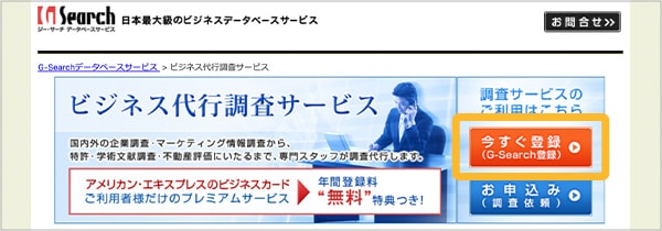 - ※ 代行調査・代行検索のご利用には、調査料金が発生します。調査料金は、「サービス・特典の登録/申し込み」ページを経由し、「ビジネス代行調査サービス」の特典専用ページにてご確認ください