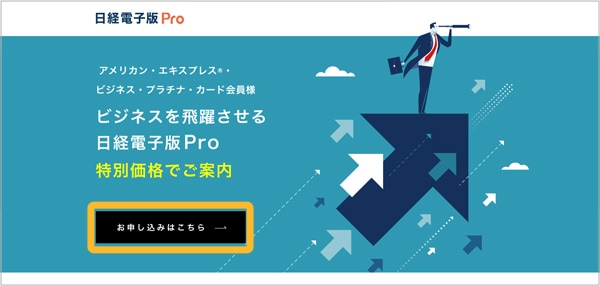 「サービス・特典の登録/申し込み」ページからビジネス情報サービス「日経電子版Pro」の特典専用ページへ移動します。