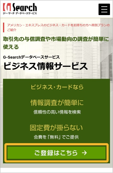 ビジネス情報サービス「ジー・サーチ」はパソコンまたはスマートフォンからお申し込み可能です。