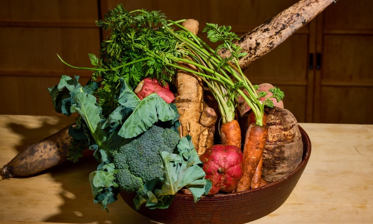 当日使用する食材は、静岡・焼津で水揚げされたばかりの魚介や早朝に専用の畑から収穫した新鮮野菜。