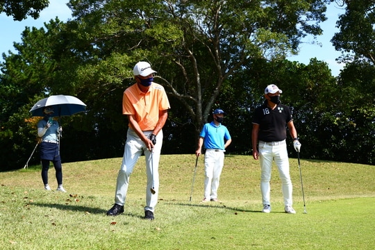 青木功プロは帯同中、一人一人のスイングに合わせたアドバイスを送っていた。アイアンでミスをした人には「ダフリの癖があるから、ボールから離れた方が良い」と語り、ボールを曲げた人には「フィニッシュまで左手でしっかりクラブを持っているだけで曲がらなくなる」と助言。青木プロの言葉はわかりやすくてシンプル。だから教えてもらった直後に「今日イチ」のナイスショットが出た参加者も多かった。ラウンド中には「ここからニアピンしよう!」「皆さんでパター対決しましょう」と青木功プロが提案。参加者は青木功プロの往年のショットに感動していた。