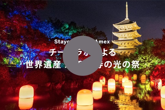 >安心な環境下で遠くに行かずとも非日常を満喫できる特別な体験をお届けする“Staycation”シリーズ。今回は、世界で活躍するチームラボによる 世界遺産 京都 東寺の光の祭へ無料ご招待。