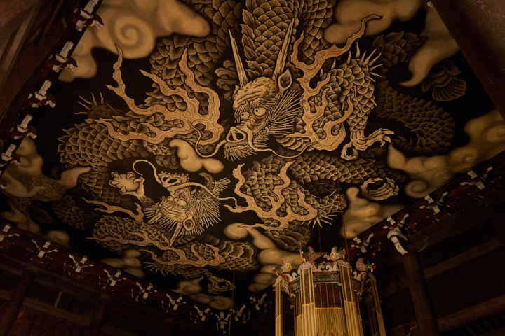 法堂の天井一面に描かれた双龍図は圧巻