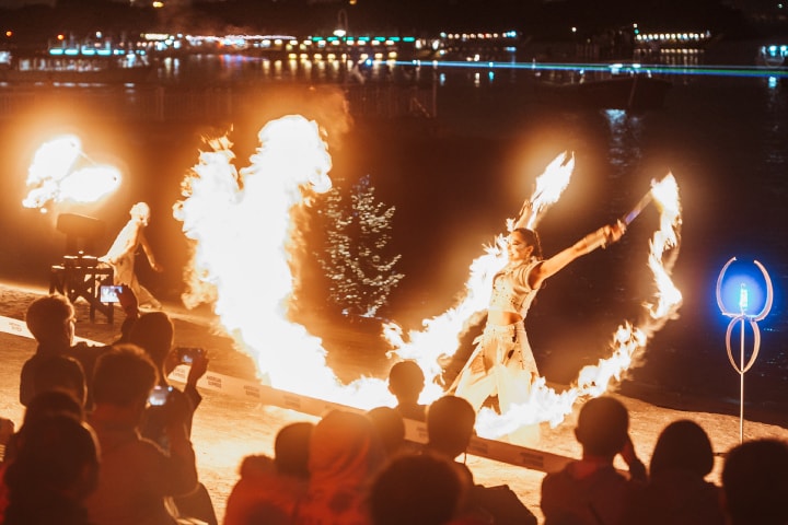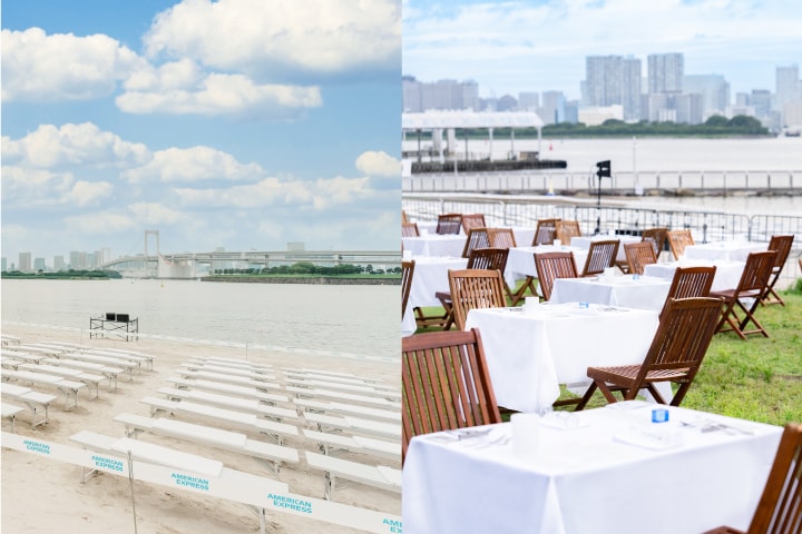 今回は、クッション付きベンチで鑑賞できる砂浜エリアとお食事やシャンパンを楽しみながら鑑賞できるディナーエリアという2つのお席プランをご用意。 海外でも高く評価されているショーを、迫力満点のお席でカード会員様にお楽しみいただきました。