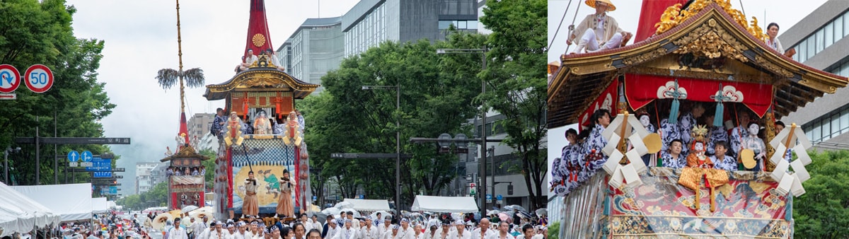 千年の時を紡ぐ山鉾巡行。祇園囃子が都大路に響くなか、