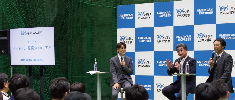 ビジネス・カード会員様向けに”好き”から学ぶビジネス哲学の第1回を開催。工藤公康さん・宮本慎也さん、MCに上重聡さんをお迎えし、”野球”をテーマに特別な場所でビジネスセミナ―、交流イベント、懇親会を開催しました。挑戦・チーム力など、トップアスリートの哲学からビジネスに活きる学びを得る一日を体験いただきました。