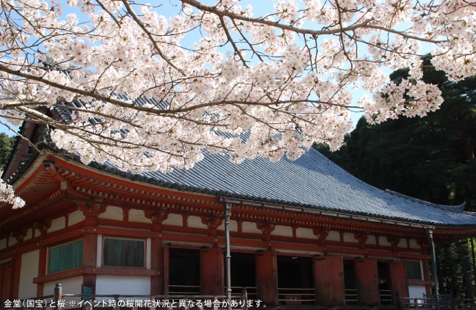 - 写真:金堂(国宝)と桜(イベント時の桜開花状況と異なる場合があります。)