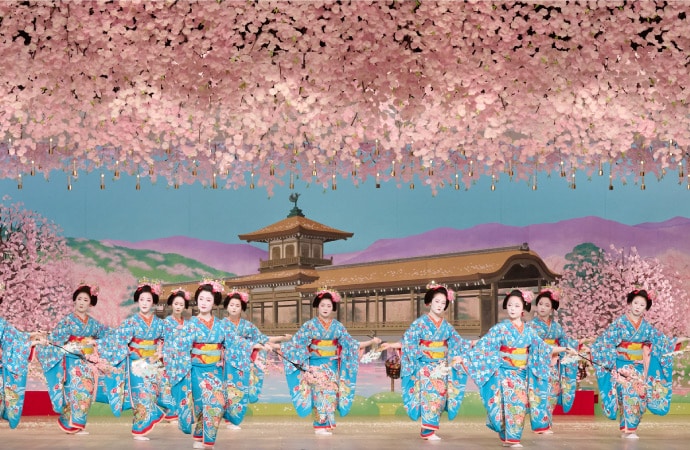京都・祇園甲部の50名を超える芸妓・舞妓が艶やかな舞で春を告げる、毎年恒例の舞踊公演「都をどり」。出演前の芸舞妓と記念撮影ができるのは、本イベントだけの貴重な機会です。芸舞妓が舞台に登場する花道が見える、前方の良席もご用意。