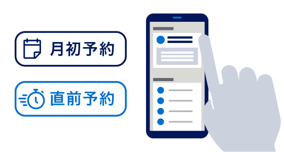 「月初予約」または「直前予約」いずれかで予約