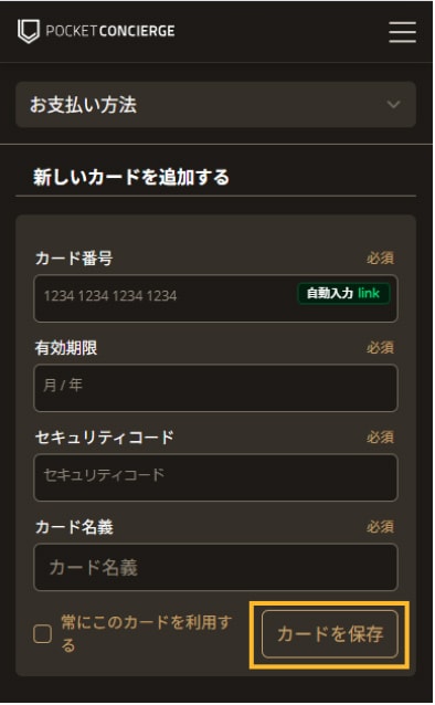 ポケットコンシェルジュにログインし、本プログラム対象のクレジットカード情報を登録ください。
