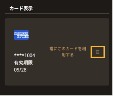 古いカード情報はゴミ箱マークをクリックして削除。