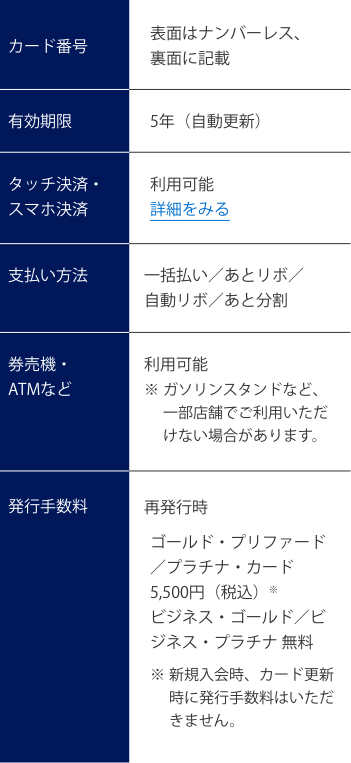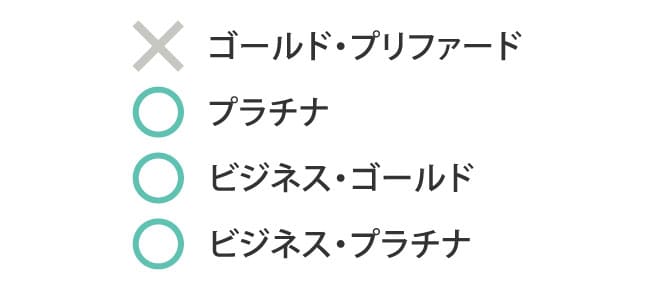 - ※ビジネス・ゴールドのみ追加カード1枚をメタルカードで発行できます。