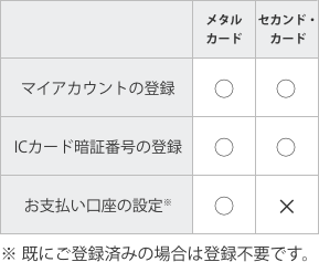 - ※お支払い口座はメタルカードで登録している口座となります。セカンド・カード用の口座設定の必要はございません。