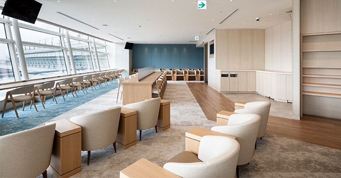羽田空港 第3ターミナルにある空港ラウンジが利用できます。入り口にて、対象のアメリカン・エキスプレスのカードとご利用当日の搭乗券またはeチケットを呈示ください。