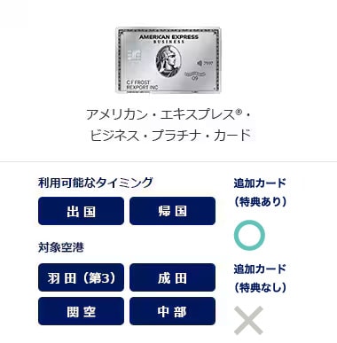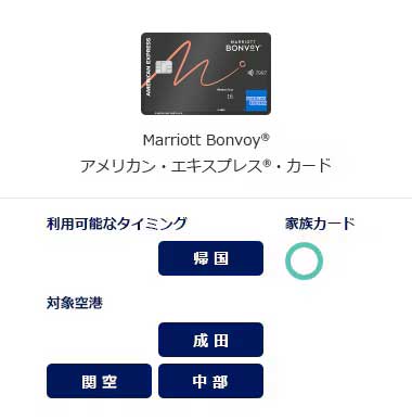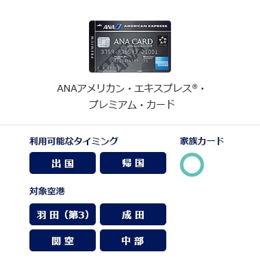 羽田空港(第3ターミナル)/成田国際空港/中部国際空港/関西国際空港 カードの種類によって、ご利用いただける対象空港が異なります。 |