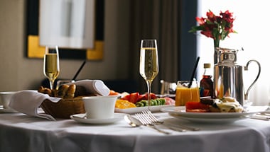 ホテル滞在中の朝食サービスが受けられます。連泊の場合でも、毎朝2名様分の朝食をご用意します。