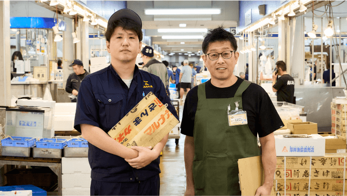 卸売市場での取引に企業間カード決済を導入した背景や今後の展開について、水産物の仲卸を行う一鱗共同水産の本間副社長と、地域密着型の食品スーパーを展開する高西商店 高西代表に語っていただきました。
