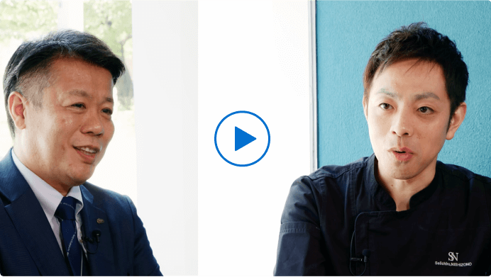 企業間カード決済を通じて広がるつながりについて、製菓材料卸の𠮷田産業 𠮷田社長と洋菓子店オーナーの西園様に語っていただきました。