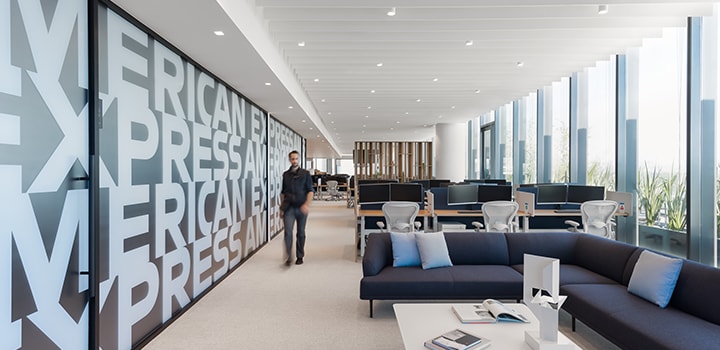 メキシコで170年近い歴史を持つアメックスは、最近メキシコシティにワールドクラスのオフィスを2つ建設し、社員のさまざまな働き方をサポートすることで、対面でのつながりやコラボレーションを促進しています。新オフィスの内装デザインは、メキシコの豊かな文化的要素と、アメリカのブランド・伝統をいずれも尊重するよう配慮されたものになっています。社員は一日中、ビル内のさまざまな設備を利用し、屋上の緑地でくつろぐことができます。