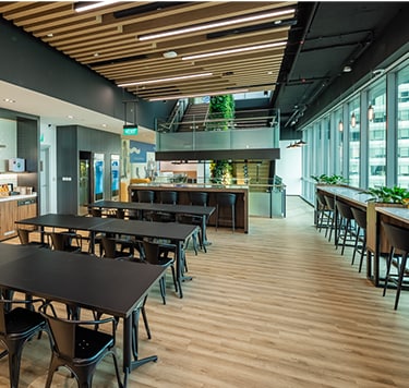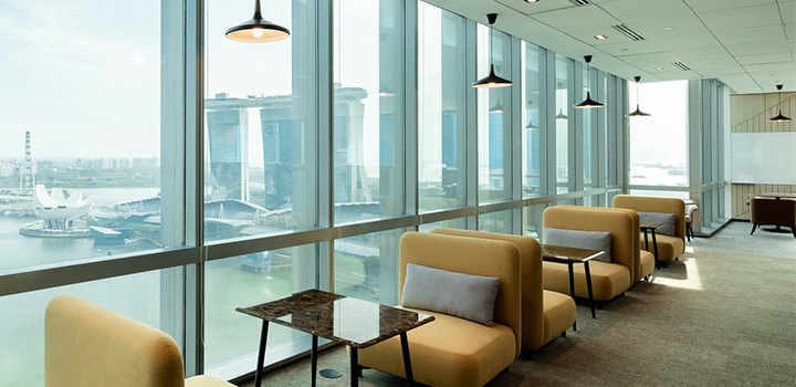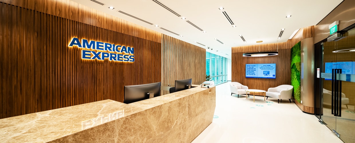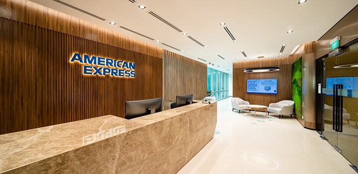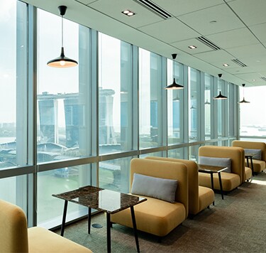 2020年に開設されたアメリカン・エキスプレスのシンガポールオフィスは、セントラル・ビジネス地区のワン・マリーナ・ブールバードに位置しています。オフィスからは、マリーナベイ・サンズやシンガポール・フライヤーなどのランドマークなどシンガポールの美しい街並みが一望でき、主要な商業施設や観光スポットに近接しています。開放的なスペースとワークステーションを備えたオフィス設計は、チームや業務部門を超えたコラボレーションを促進します。