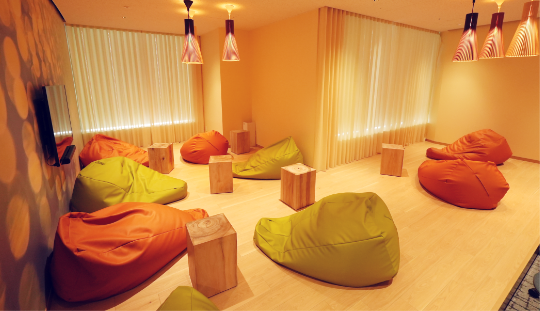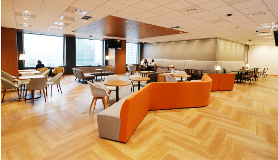 席はすべてフリーアドレス。ランチや休憩にも利用できるフリースペースが多く、オープンな環境で仕事ができます。ちょっとした気分転換にうれしいリラクゼーションルームも完備。